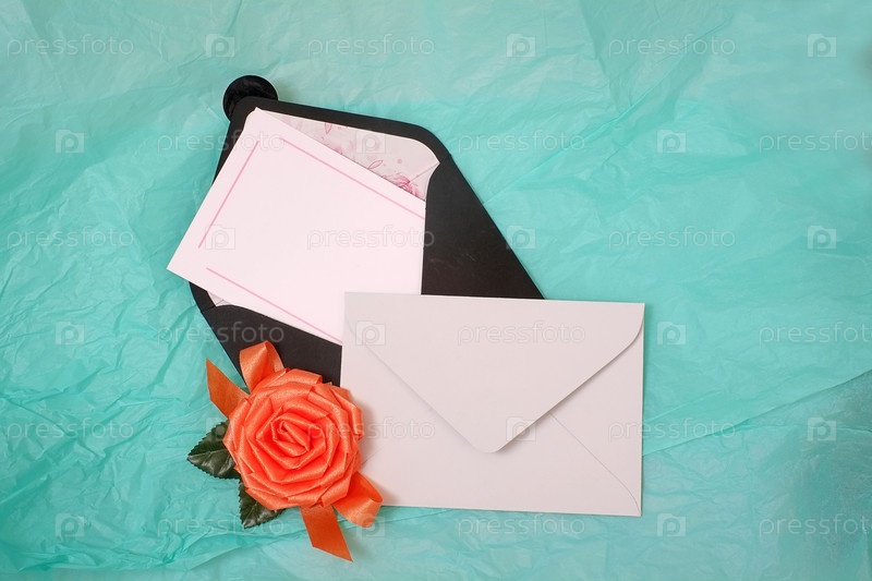 Романтическая композиция с черными конвертами на бирюзовом фоне