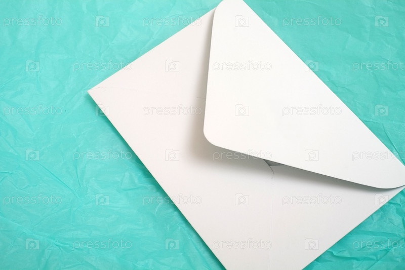 Романтическая композиция с белыми конвертами на бирюзовом фоне