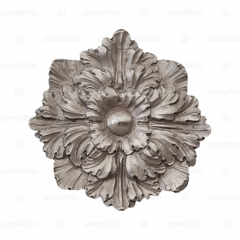 Серебряный декоративный элемент в виде цветка изолирован на белом фоне