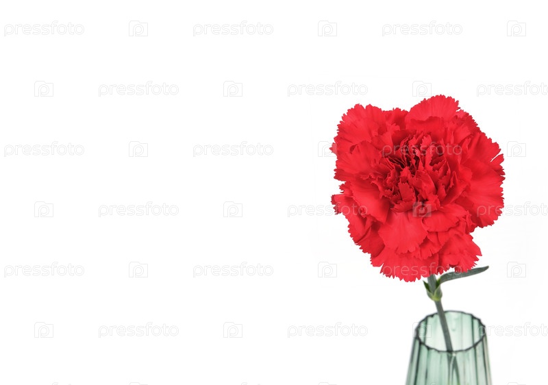 Один цветок красной гвоздики в стеклянной вазе изолирован на белом фоне