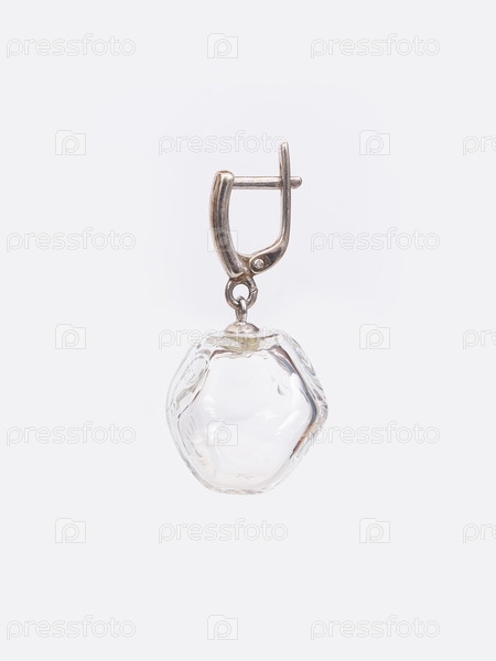 Серебряные серьги со стеклянным шаром изолированы на белом фоне