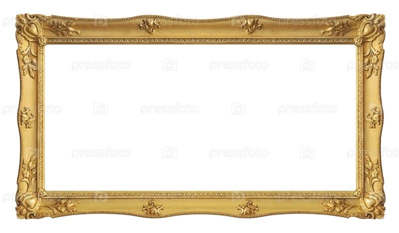 Панорамная золотая рама для картин, зеркал или фотографий, изолированных на белом фоне