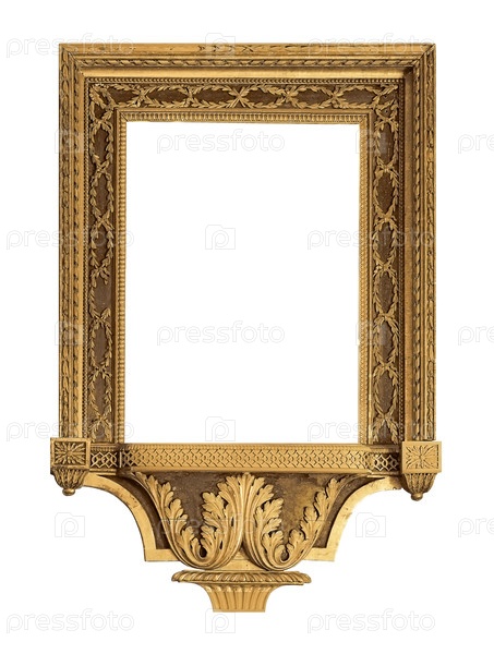 Золотая рама для картин, зеркал или фотографий, изолированных на белом фоне