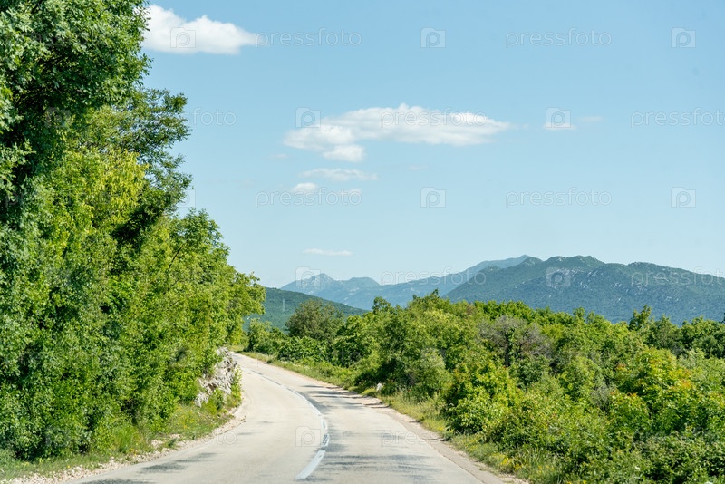 Живописная дорога среди гор Боснии и Герцеговины, автомобиль едет по сельской дороге