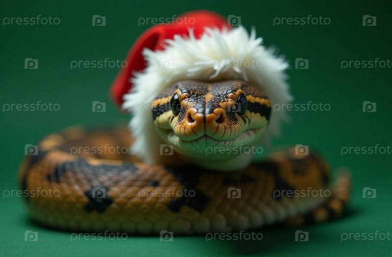 Новогодний змеиный портрет в домике Санта Клауса Грин, рождественская открытка. искусственно создан