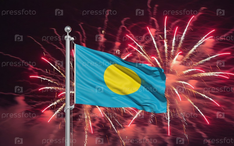 Национальный флаг независимости Палау, фоновый фейерверк
