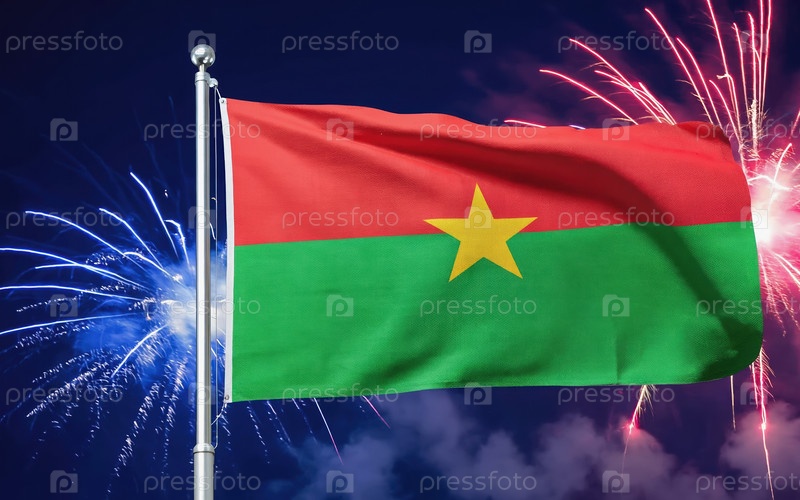 AI генеративный Национальный флаг Независимости Буркина-Фасо, фон с фейерверком