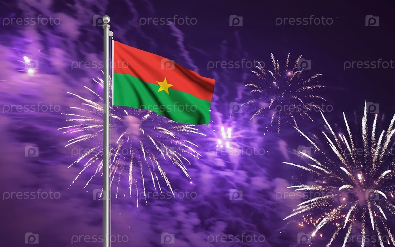 AI генеративный Национальный флаг Независимости Буркина-Фасо, фон с фейерверком