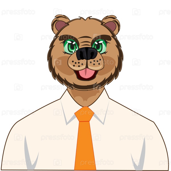 Векторная иллюстрация портрета дикого медведя в рубашке с галстуком