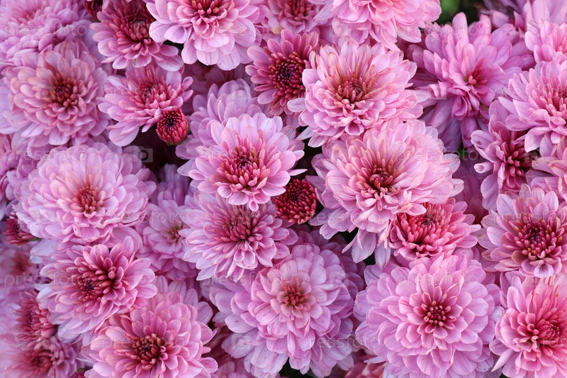 Цветы розового хризантема (многоцветка) заполняют все пространство
