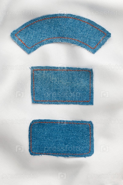 Этикетки джинсов лежат на белом шелке