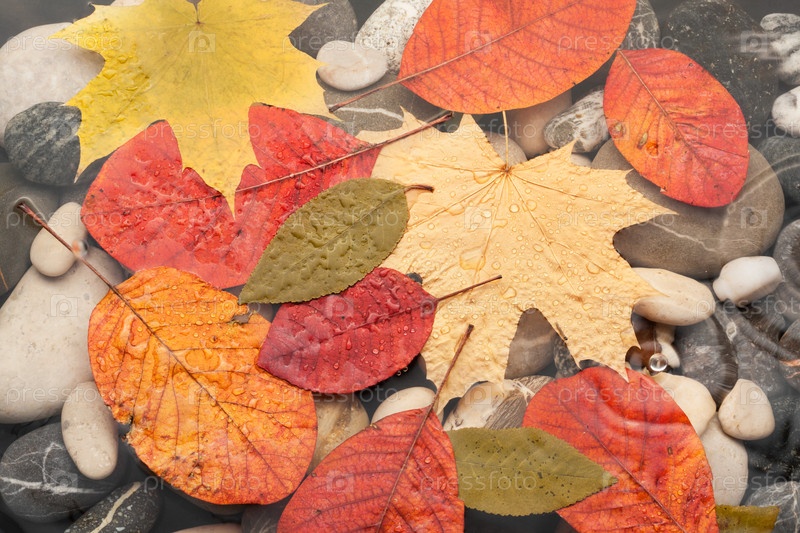 Осень, красивые листья в воде под дождем