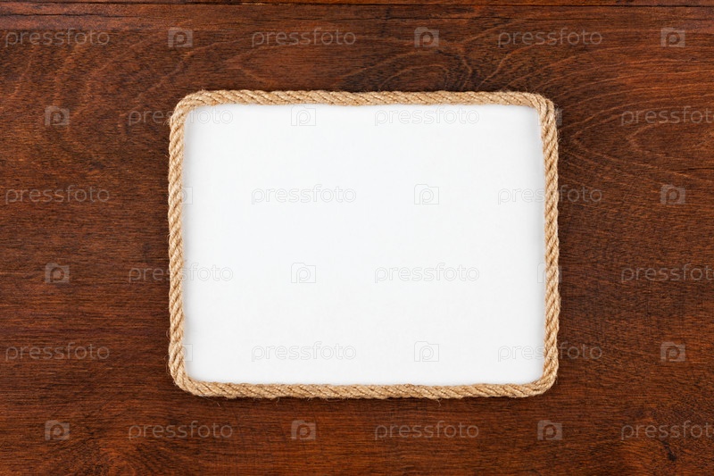 Рамка веревки, лежащей на деревянной поверхности с белым фоном