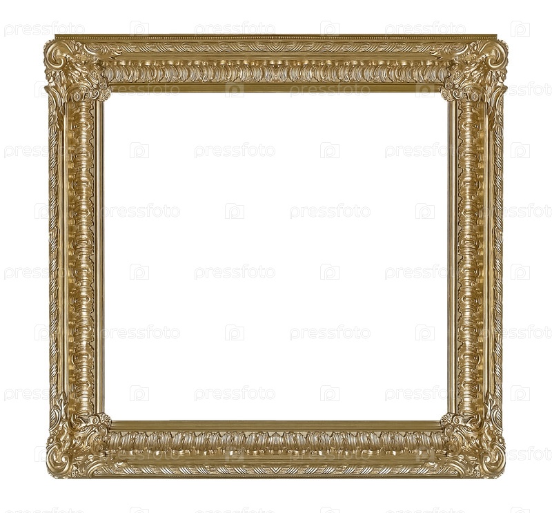Золотая рама для картин, зеркал или фотографий, изолированных на белом фоне