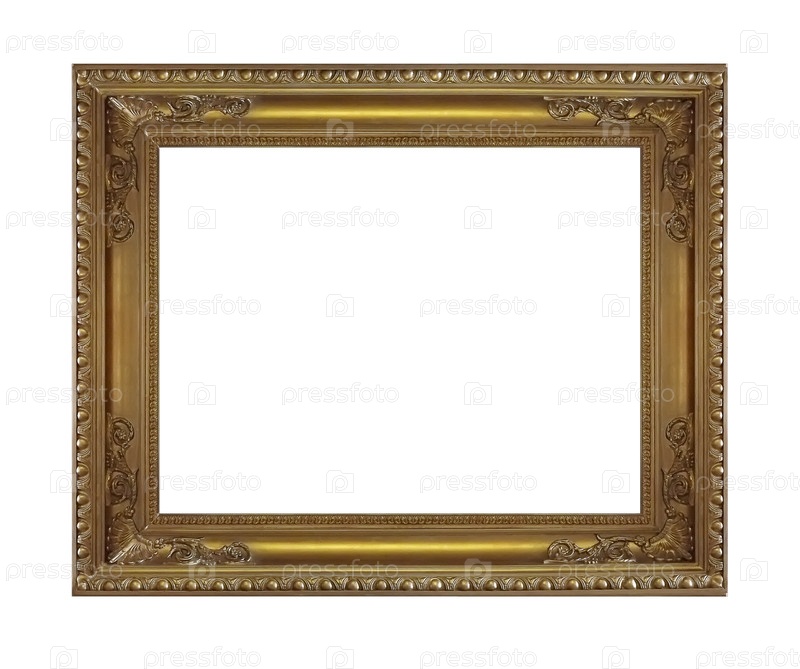 Золотая рама для картин, зеркал или фотографий, изолированных на белом фоне