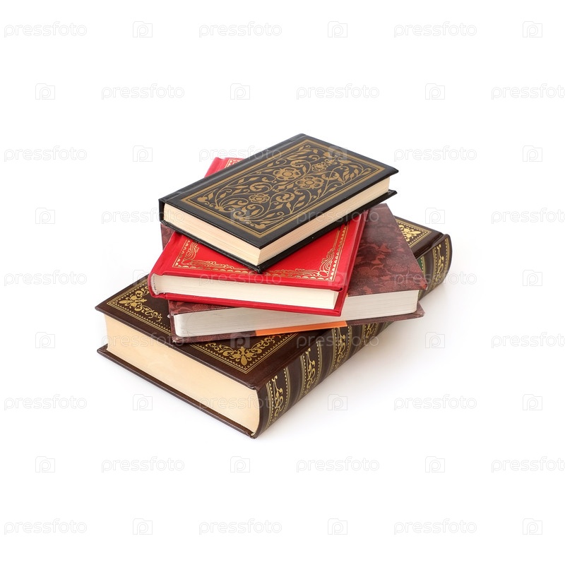 Куча книг в цветных обложках с белыми листами, изолированными на белом фоне