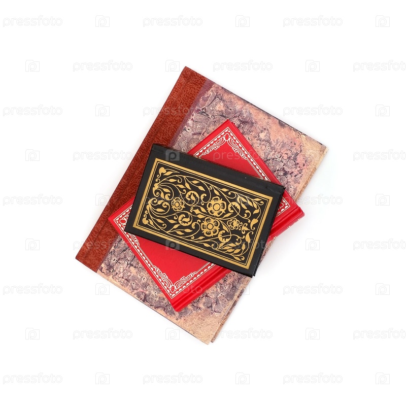 Куча книг в цветных обложках с белыми листами, изолированными на белом фоне