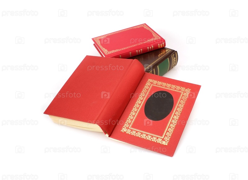 Куча книг в цветных обложках с белыми листами, изолированными на белом фоне