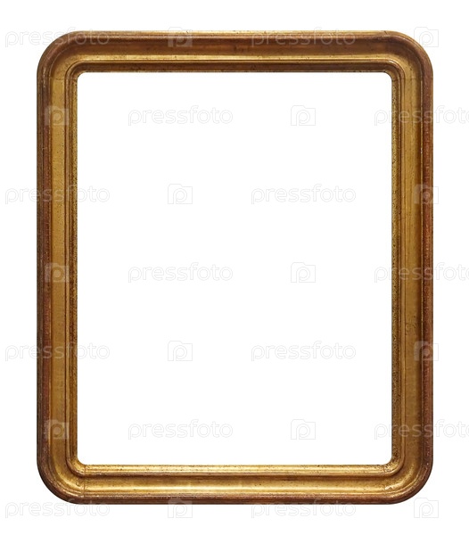 Золотая рама для картин, зеркал или фотографий, изолированных на белом фоне
