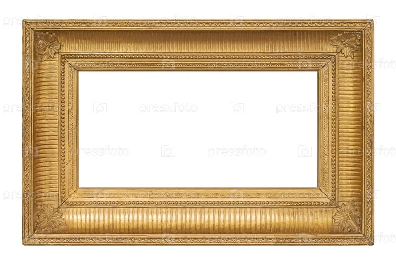 Панорамная золотая рама для картин, зеркал или фотографий, изолированных на белом фоне