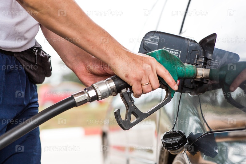 Заправка. Офицер по заправке в топливном баке машины. Мужчина заполняет машину бензином. Рост цен на топливо во всем мире