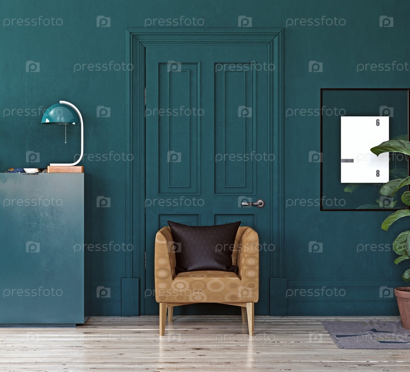 Темно-зеленая комната с одиноким креслом