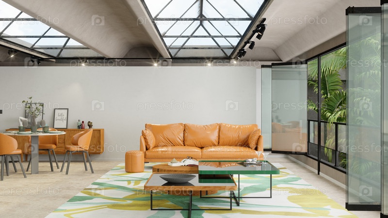 Современные оранжевые акценты гостиной