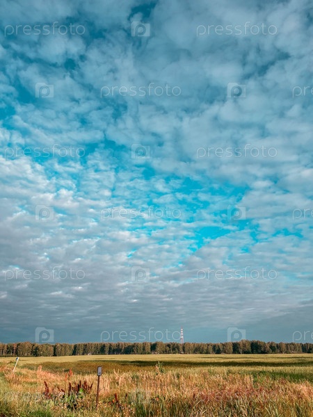 Облачное небо на оранжевом поле