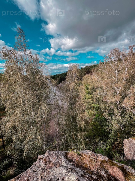 Пейзаж с вершины горы с видом на реку