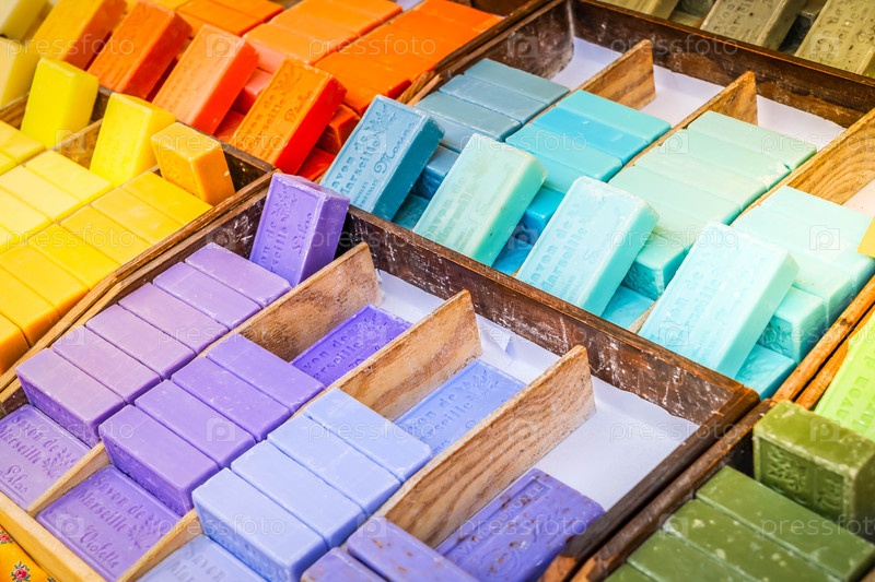 Наружный киоск на красивом старом городском рынке с традиционным ручным мылом