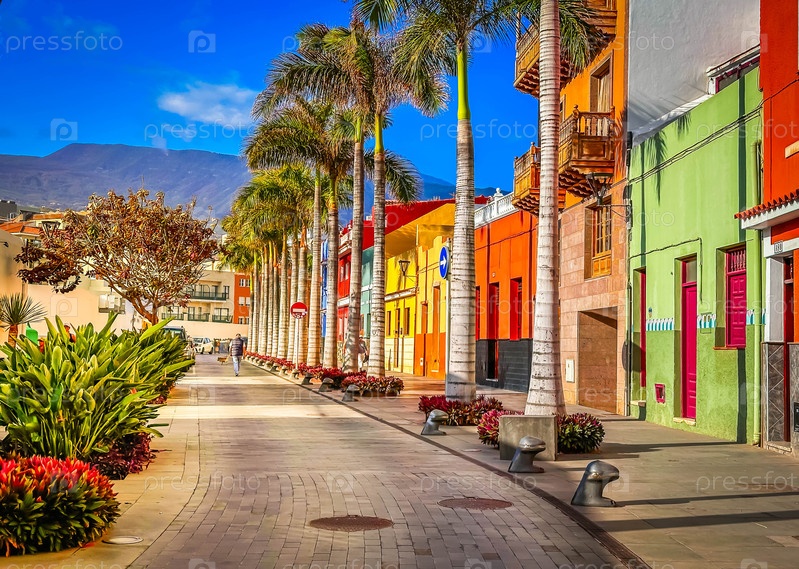 Старая улица с красочными домами в Пуэрто-де-ла-Крус, Испания