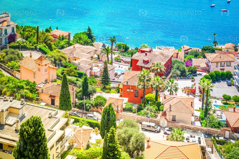 Красочное побережье и чистая вода с крышами, Азурный Прованс, Франция
