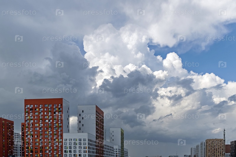 Светлые и темные облака над домами