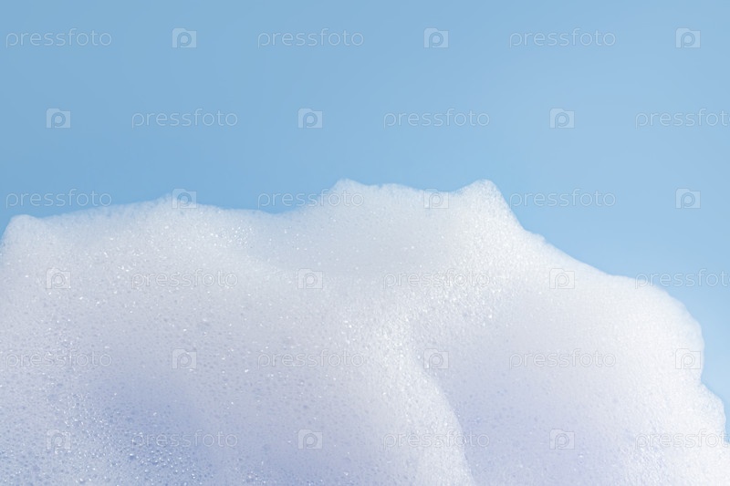 Текстура белой пузырьковой ванны, мыла, стирального порошка на синем фоне. Планирование презентации вашего косметического продукта