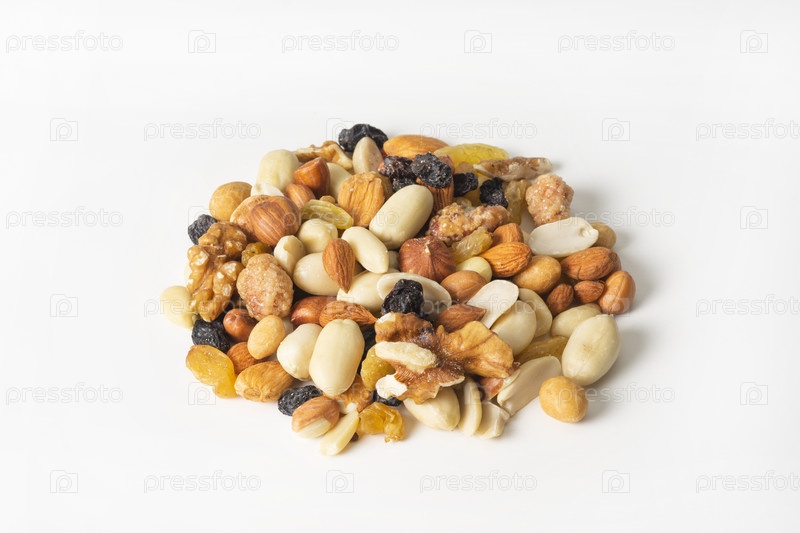 Куча различных видов орехов на белом фоне.Здоровая пища.Ореховая смесь