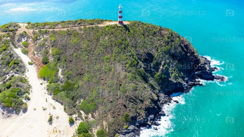 Пляж с маяком на холме удален из дрона