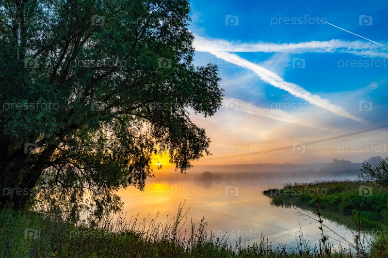 Водное тело с деревом на переднем плане