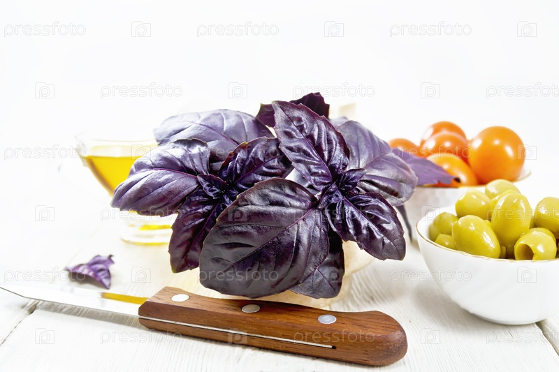 Фиолетовый базилик в растворе на световой доске