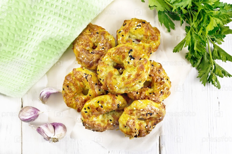 Багели с сыром на доске наверху