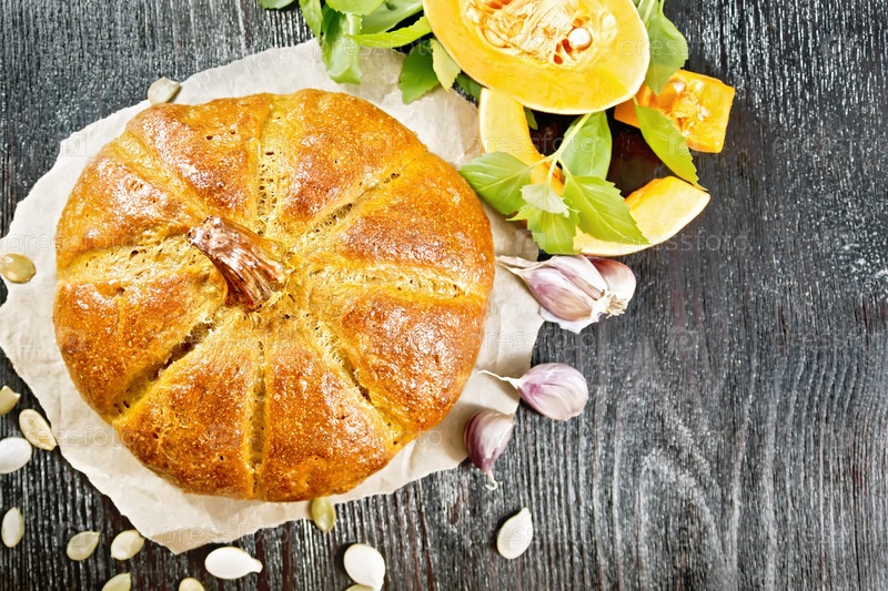 Хлебный тыквенник на вершине доски