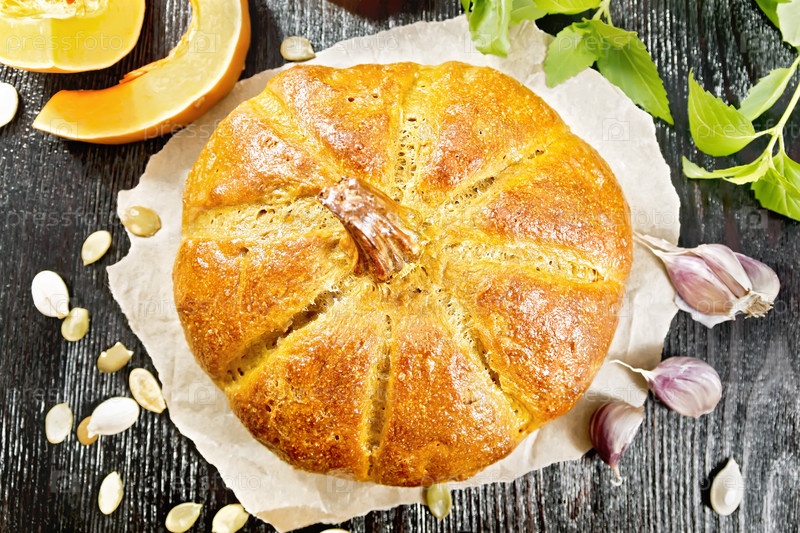 Хлебная тыква на деревянной доске сверху