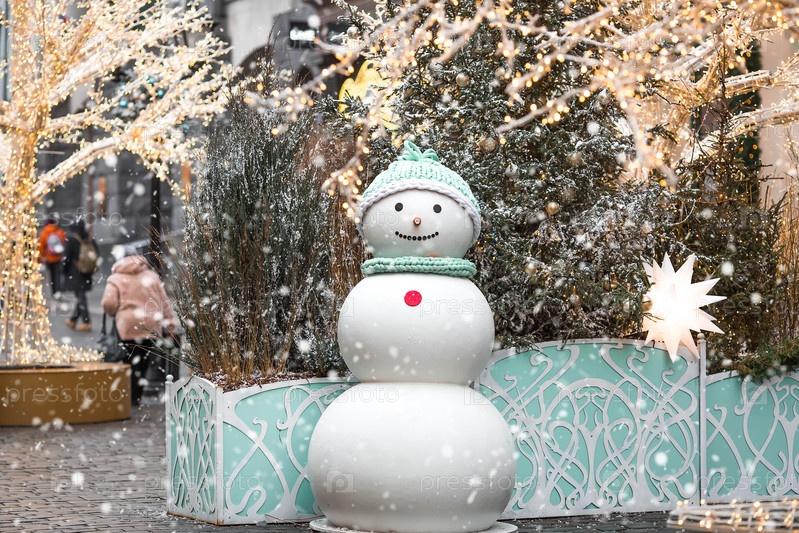 Праздник снеговиков на улицах Москвы Рождественский фон со снежным человеком Концепция подготовки и дизайна нового года Новогодняя открытка 2026