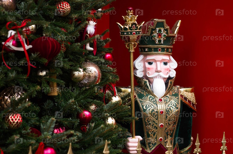 Орехолом на новогодней елке в Москве.Новогодняя открытка 2026.Прекрасный рождественский фон.Концепция подготовки украшений и костюмов к Новому году