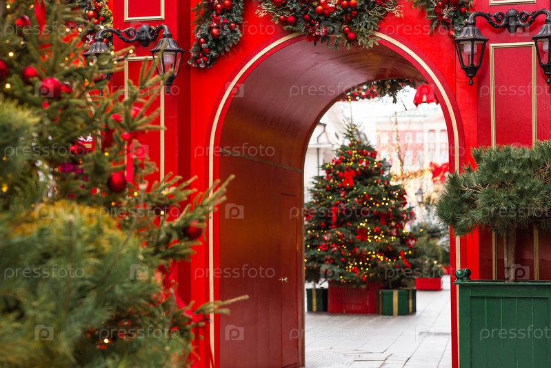 Рождественские украшения на улицах Москвы Магический рождественский фон Концепция подготовки и дизайн для Нового 2026