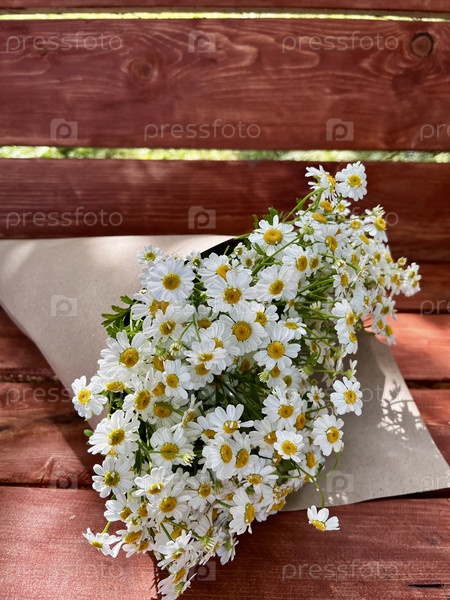 фото букета на скамейке