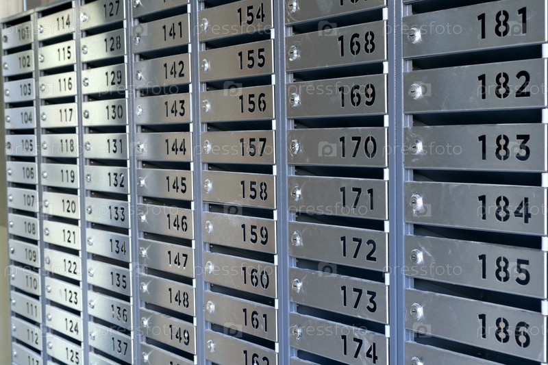 Почтовые ящики с номерами квартир в одном из входов многоквартирного дома