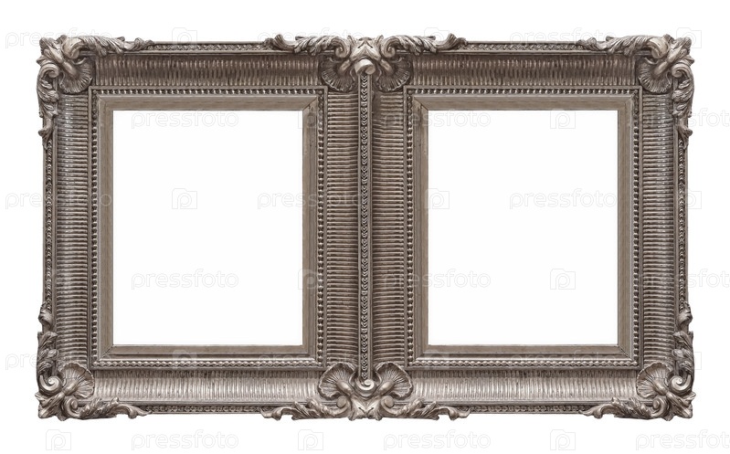 Двойная серебряная рама (диптих) для картин, зеркал или фотографий, изолированных на белом фоне