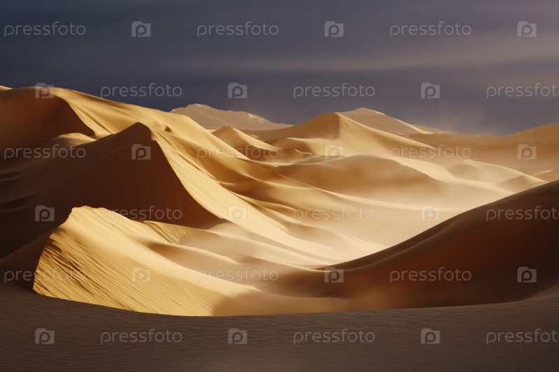Песчаные дюны в пустыне на крыше темного штормового неба