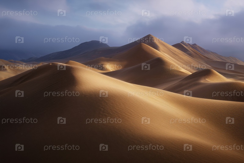 Песчаные дюны в пустыне с грубым небом на заднем плане