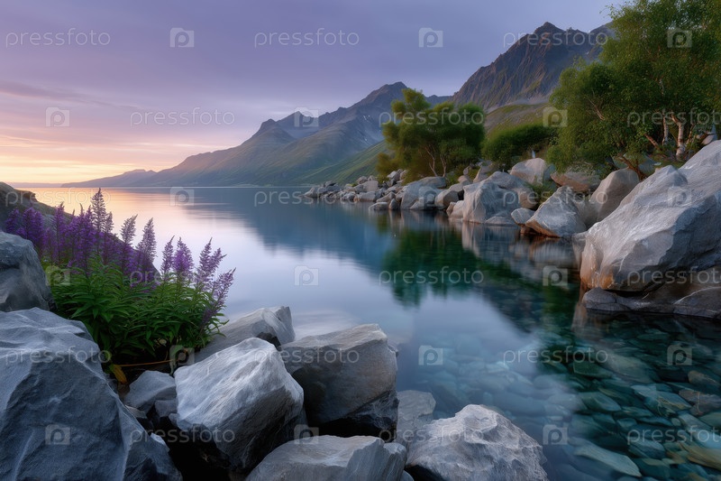 Восход солнца над чистым горным озером
